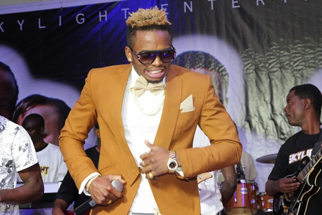 Diamond akiimba huku Mkurugenzi wa Skylight Entertaiment,Sebastian Ndege akionekana kufuria muziki muzuri.